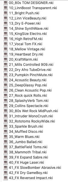 35 Kontakt presets (one INIT, 34 factory Presets)